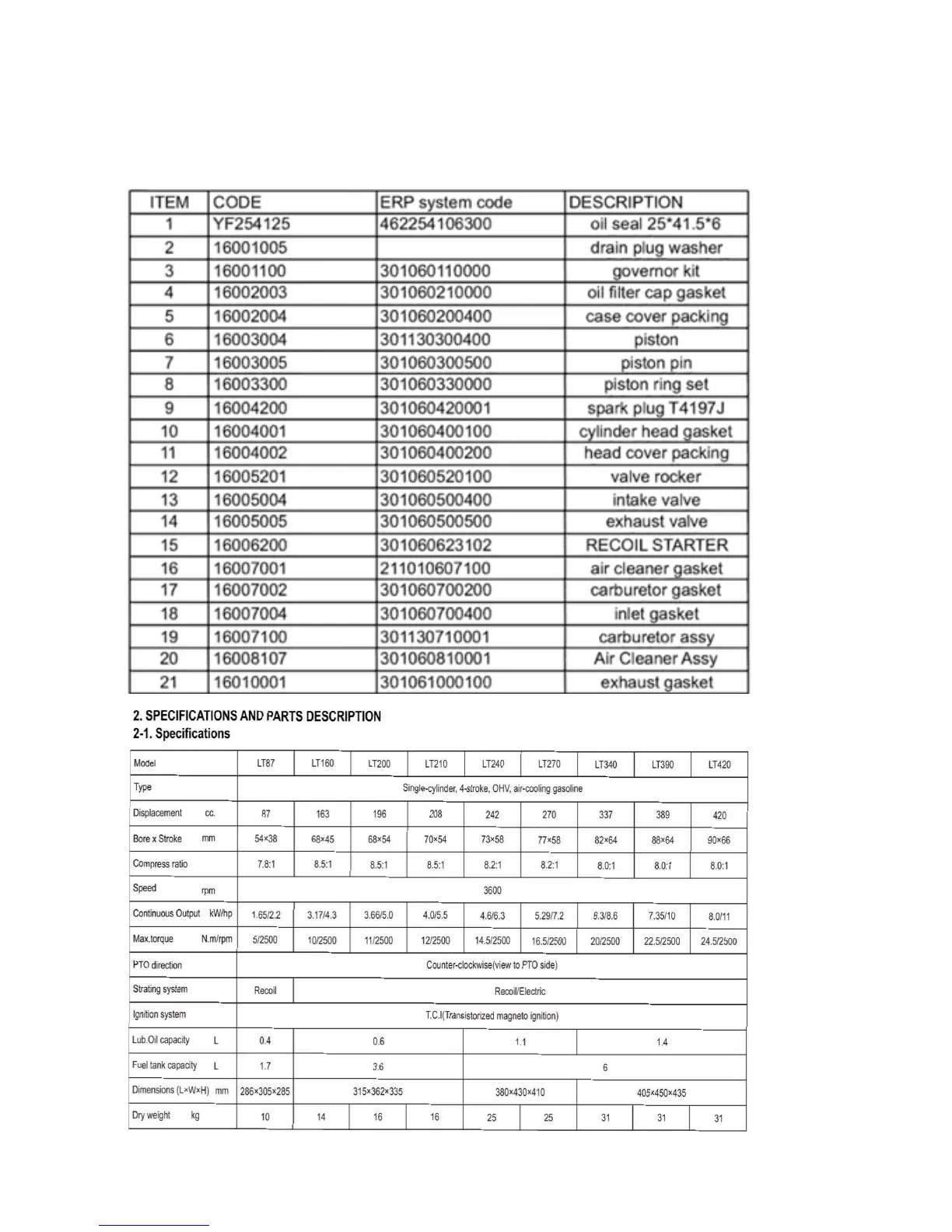 SPARE PARTS & SPECIFICATIONS!