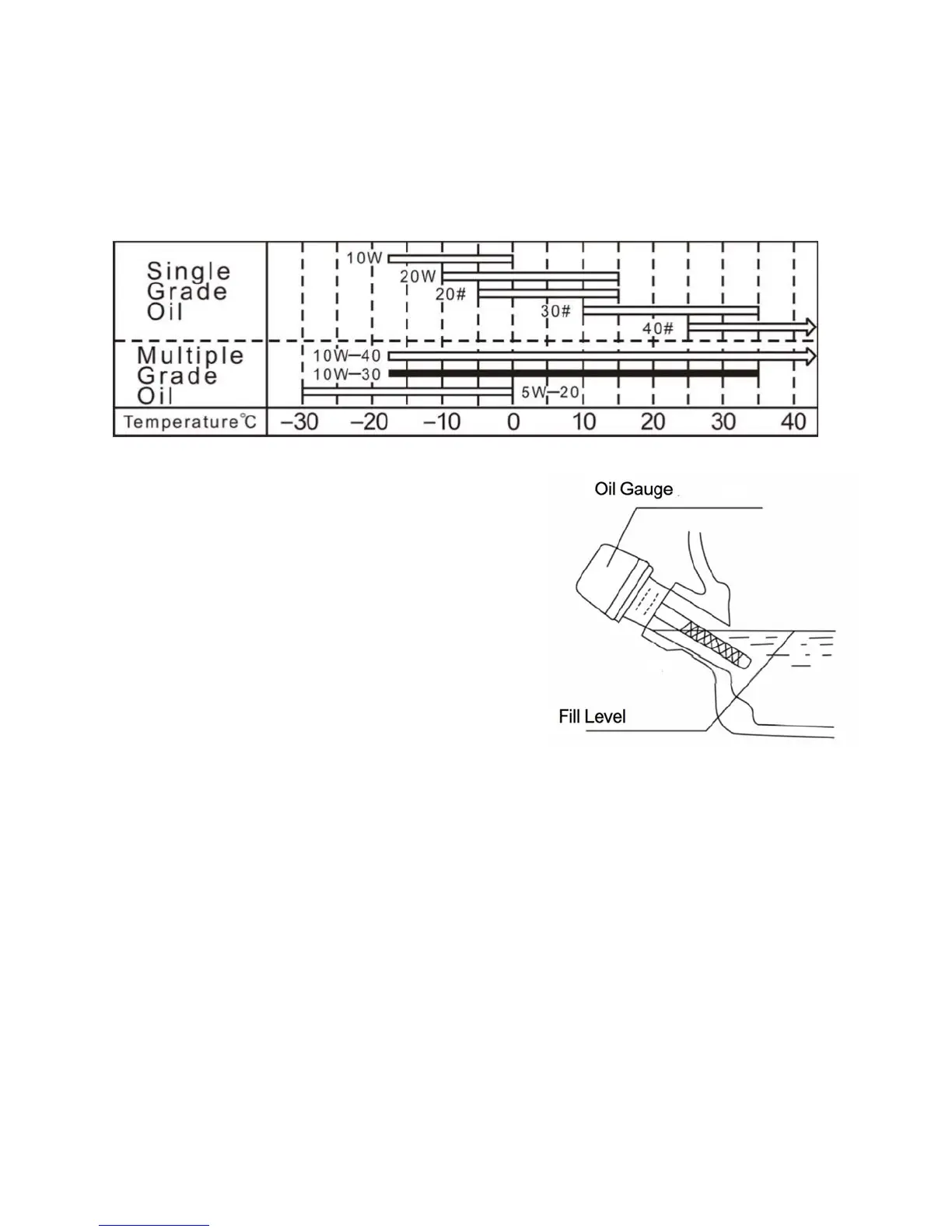 ·Use the engine oil grade depending on ambient temperature using the