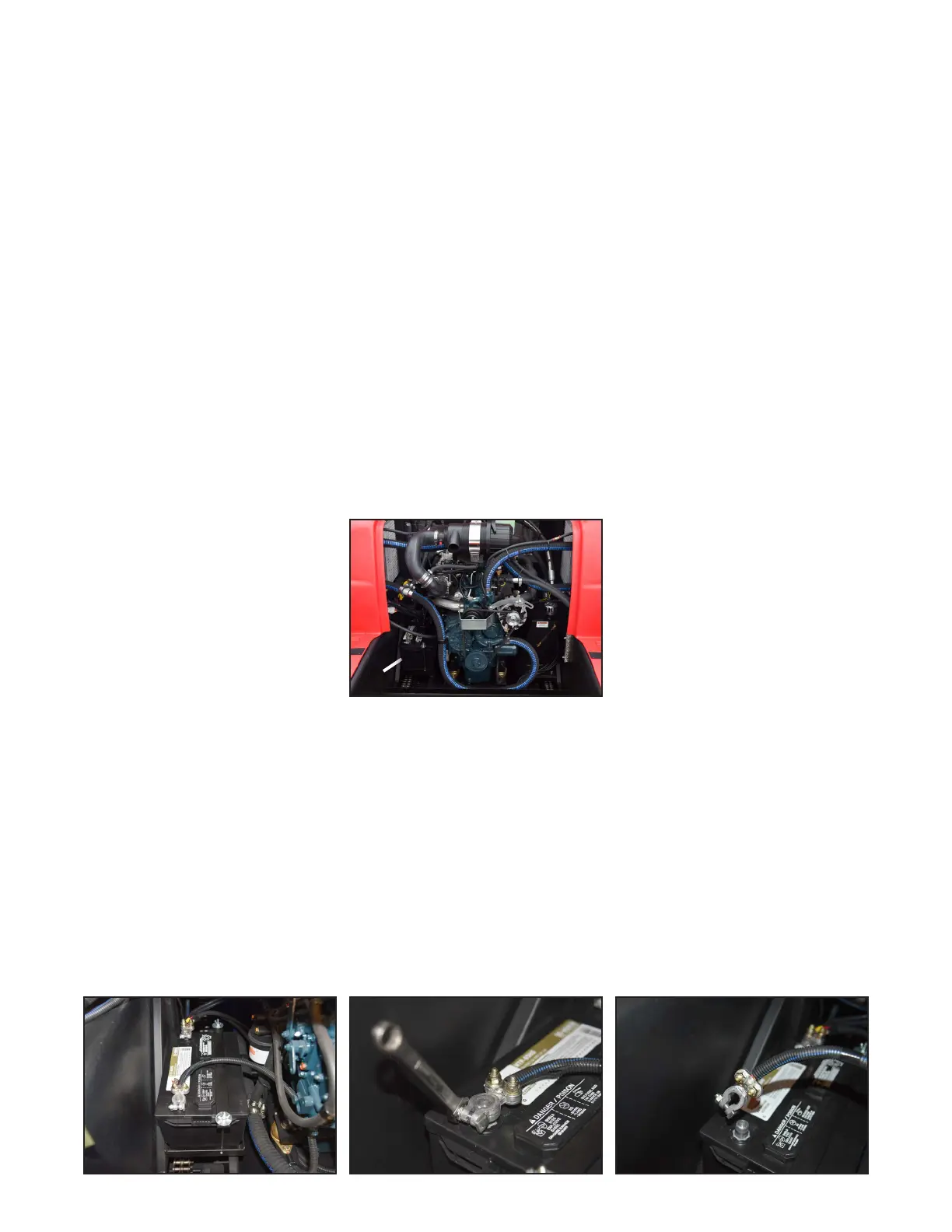 • Sparks and/or smoke occur near the battery terminals.
