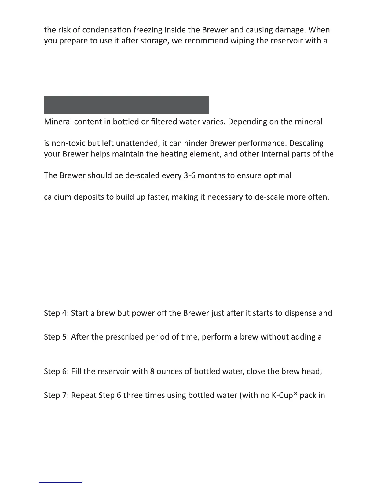 content of the water, calcium deposits or scale may build up in your Brewer. Scale