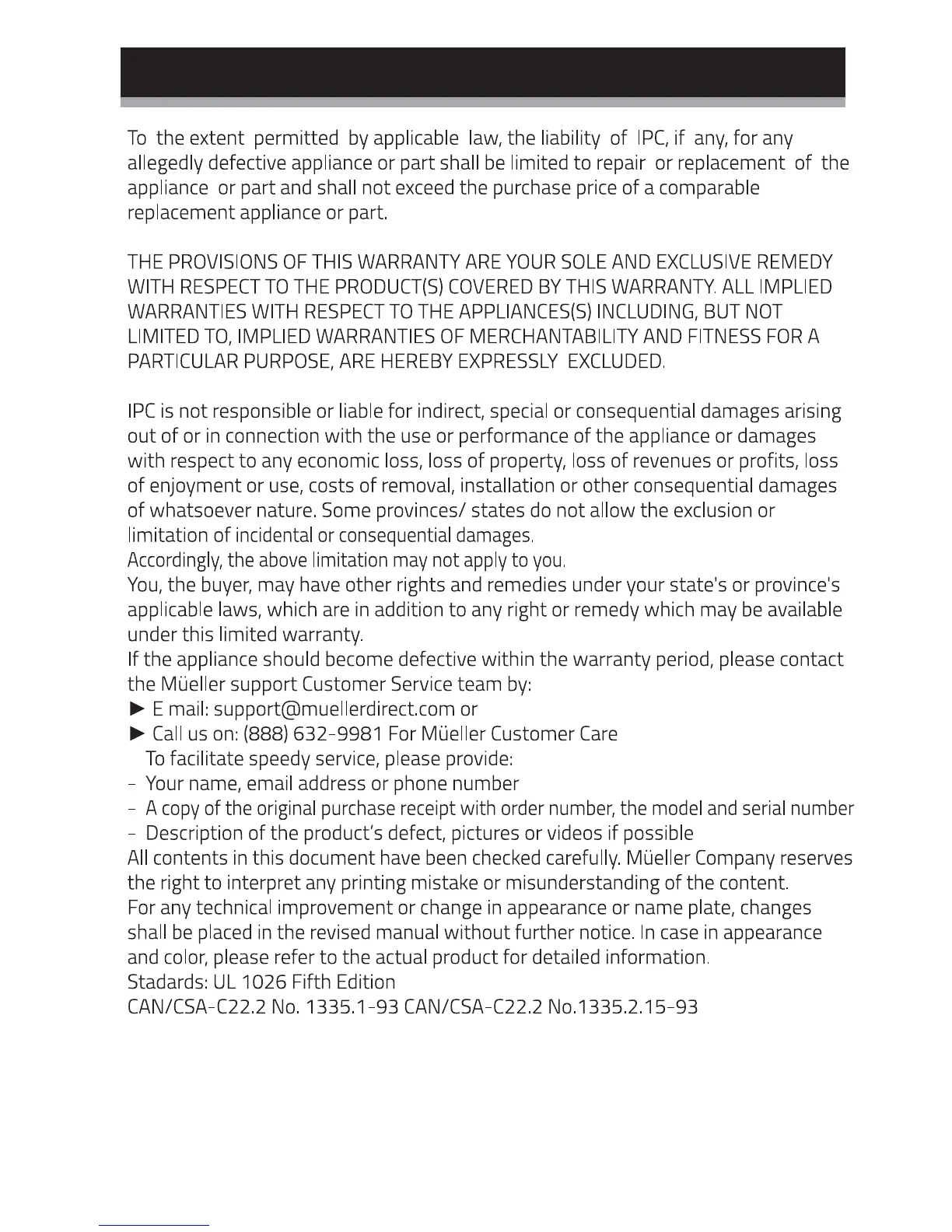 Mueller U-700 - Limitation and Exclusions