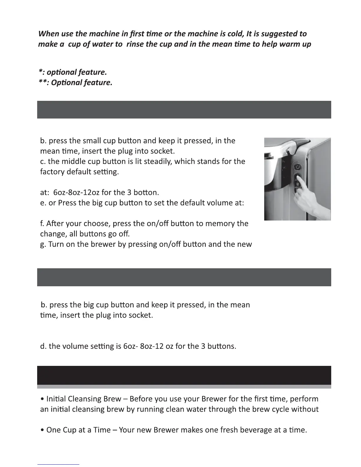 d. You can press the small cup size to set the default volume