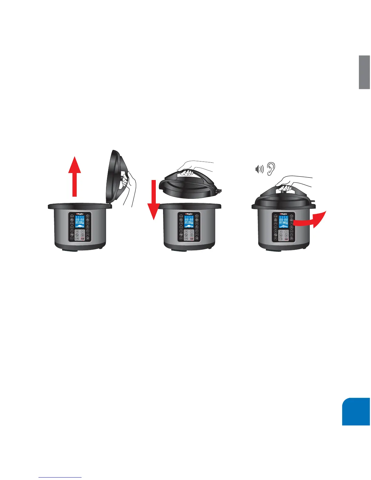 Note: A sound should be heard when closing the lid, meaning the lid is closed and