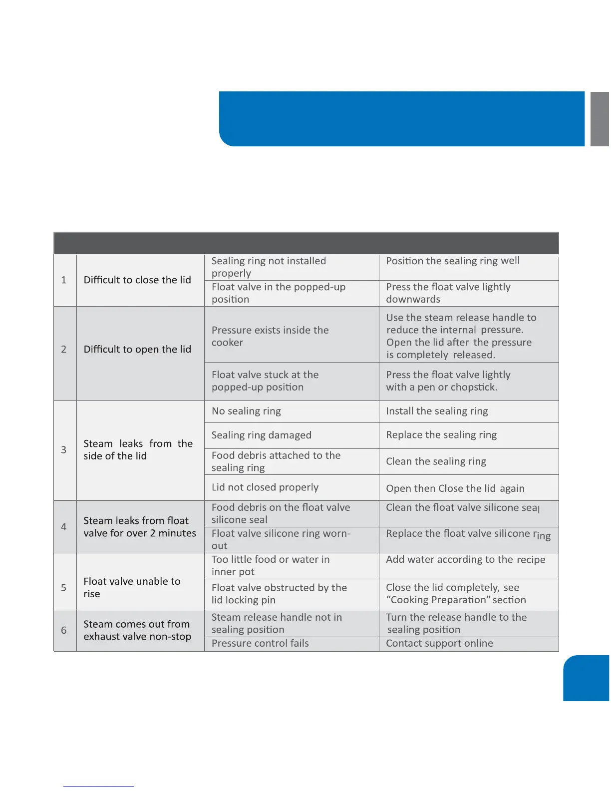 customers. If you can't nd solution to your problem in this chart, please contact