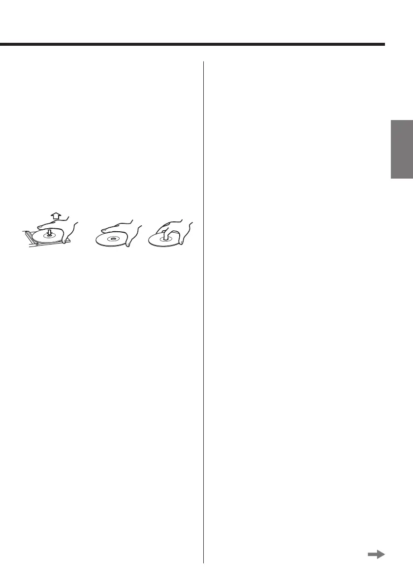 < Pour retirer un disque de son boîtier, appuyez sur