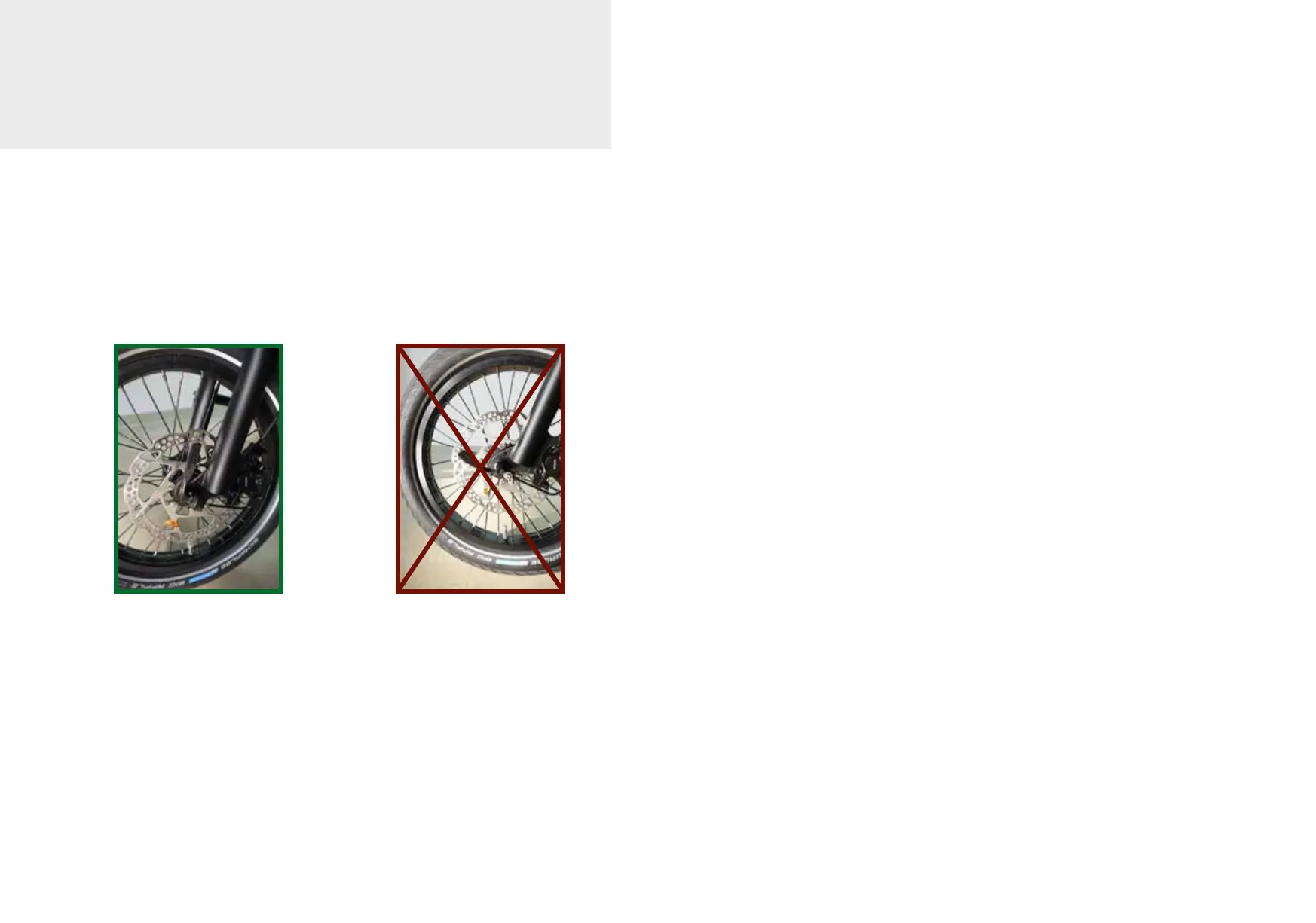 The wing of the quick release on the front wheel must be parallel to the fork tube