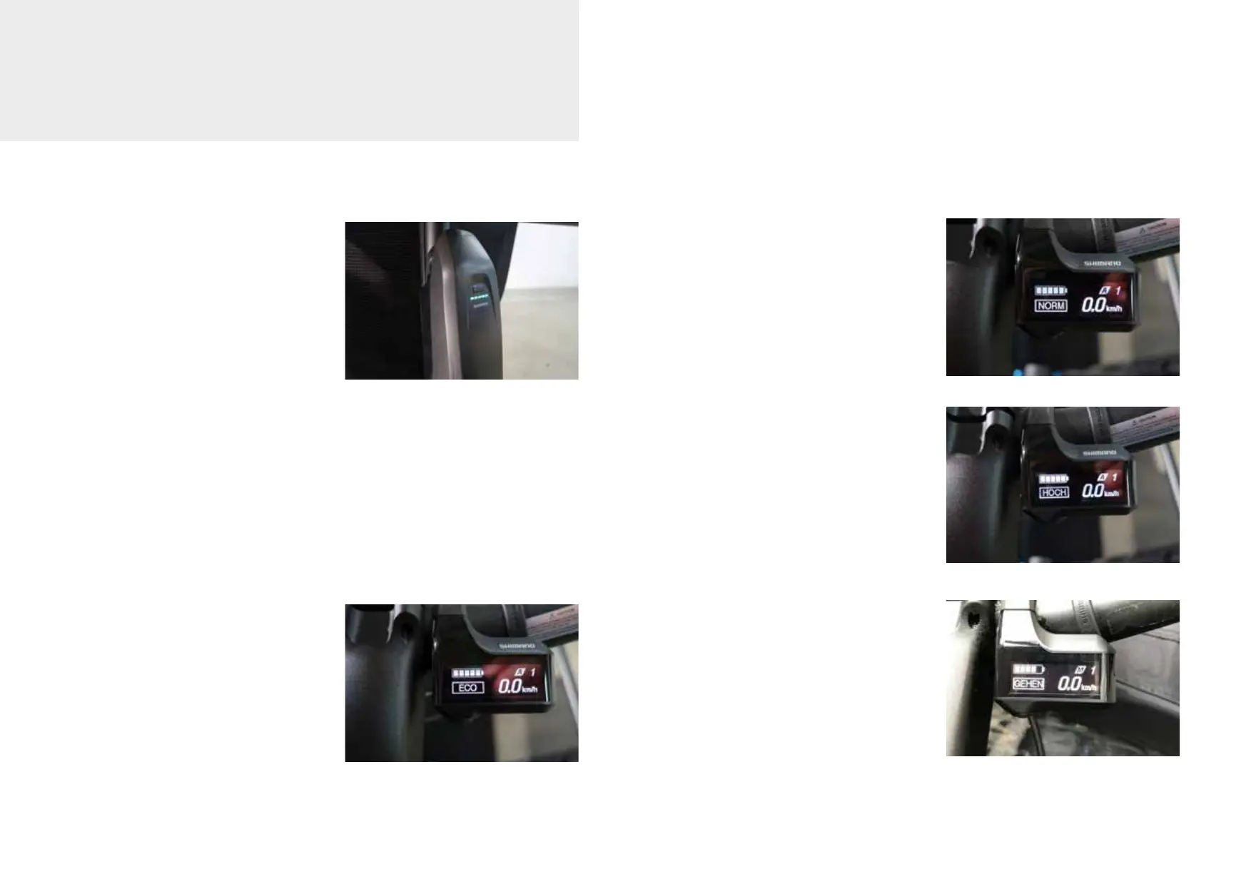 The Shimano E6100 series oers you dierent modes of assistance with the fol-