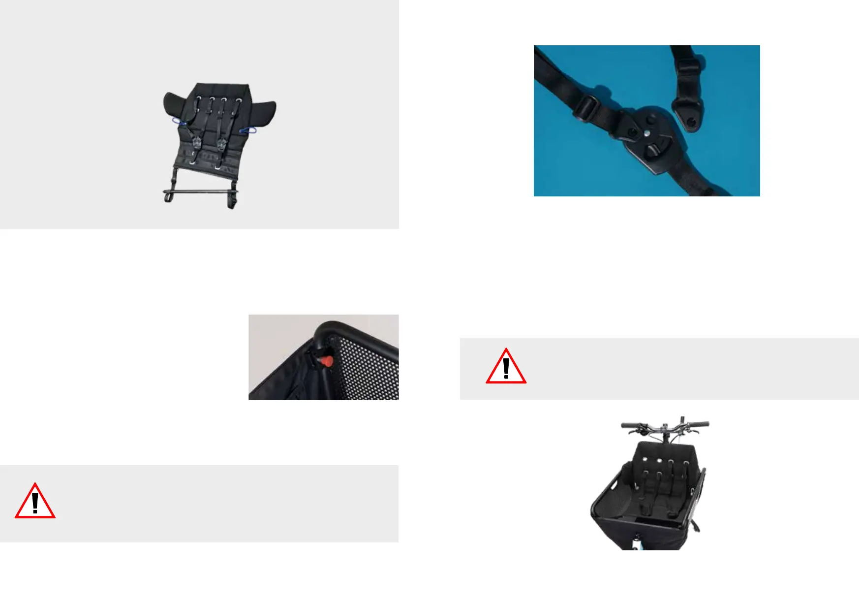 Before each ride, check the seam, rivet, plug-in, belt and screw connections for