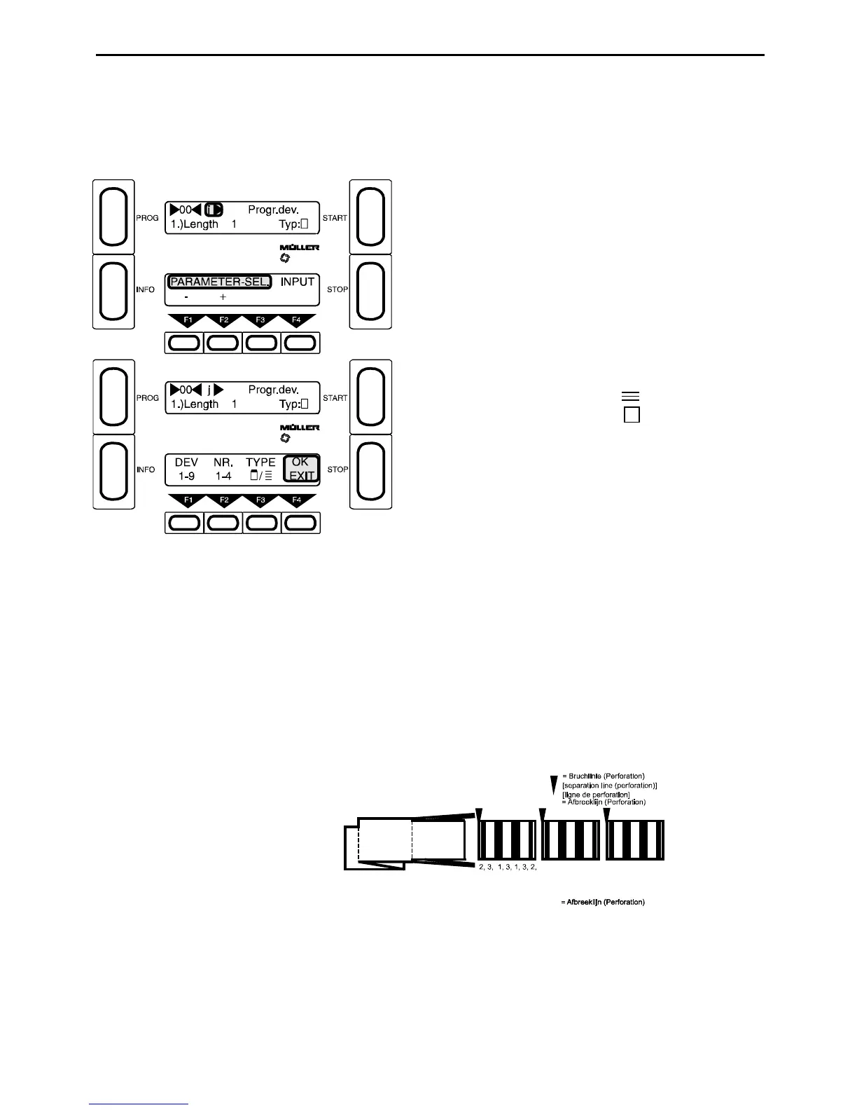 The lengths in parameter i) can now be entered in the desired sequence under the numbers 1-9. The machine