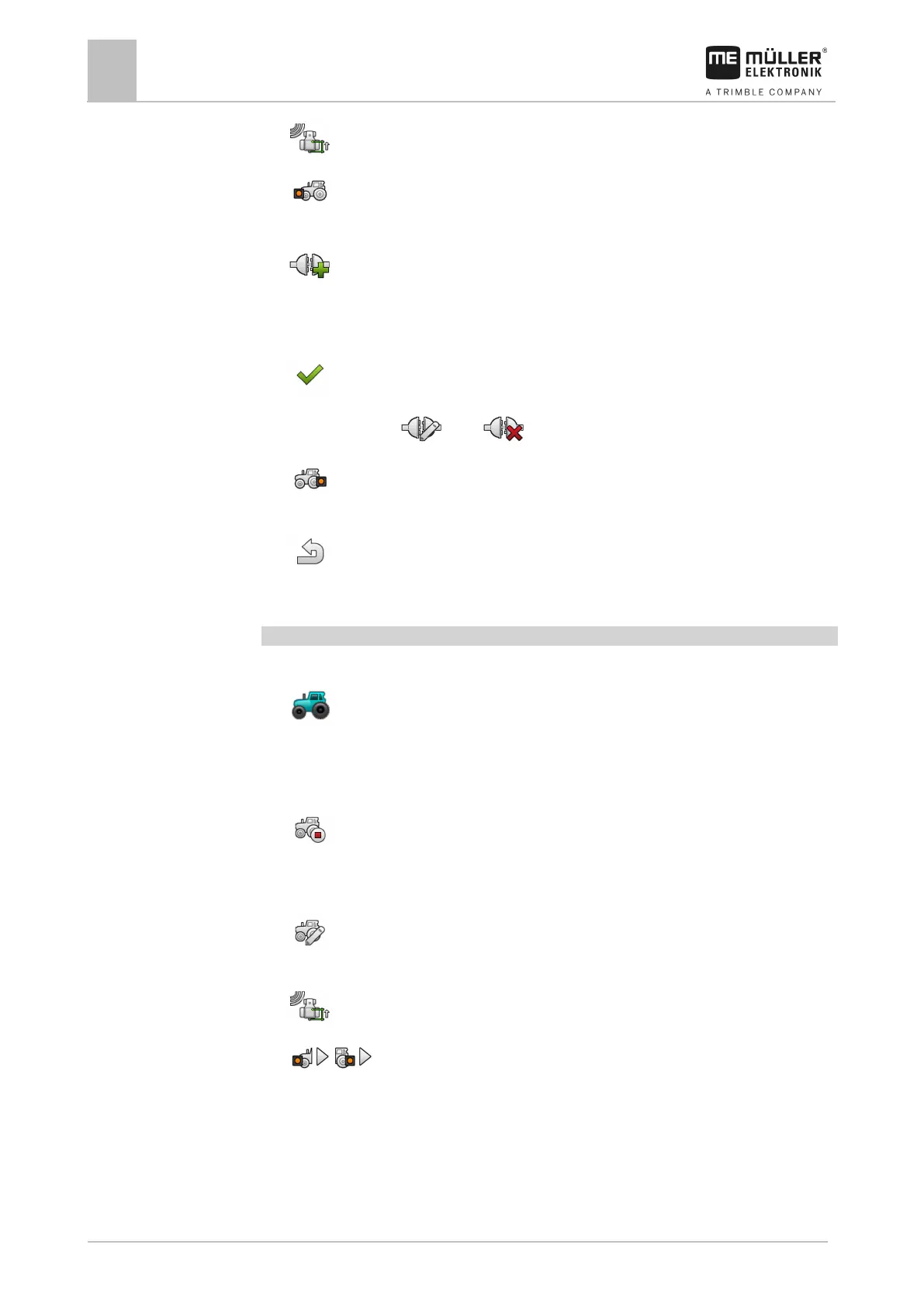 ⇨ If a tractor profile is activated, most of the other function icons are greyed-out.