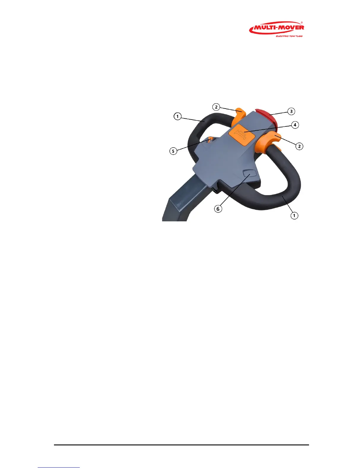 The steering handle (1) with bar is a fixed part of the Multi-Mover XL75, moving to the left means