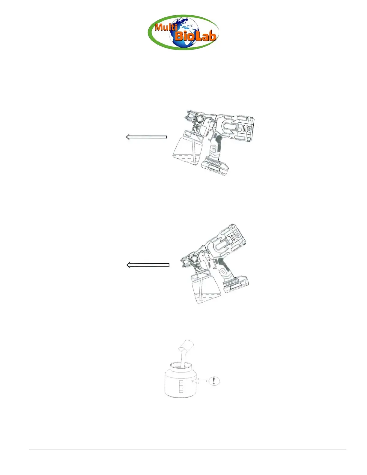 b. If spray in a downward direction, the angled end of the suction tube should be pointing toward