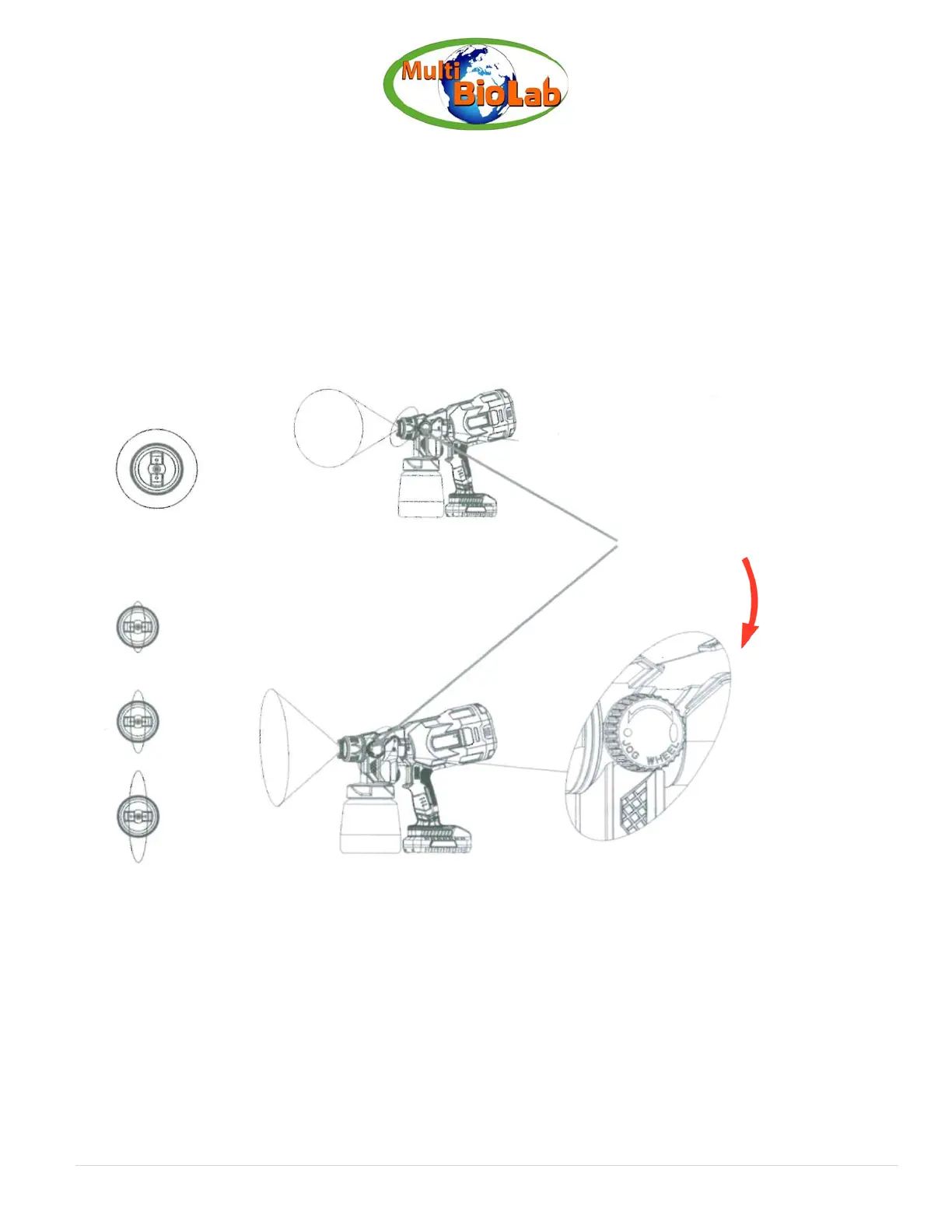 7. Spray length adjustment: Turn this knob to adjust the round shape from vertical to horizontal.