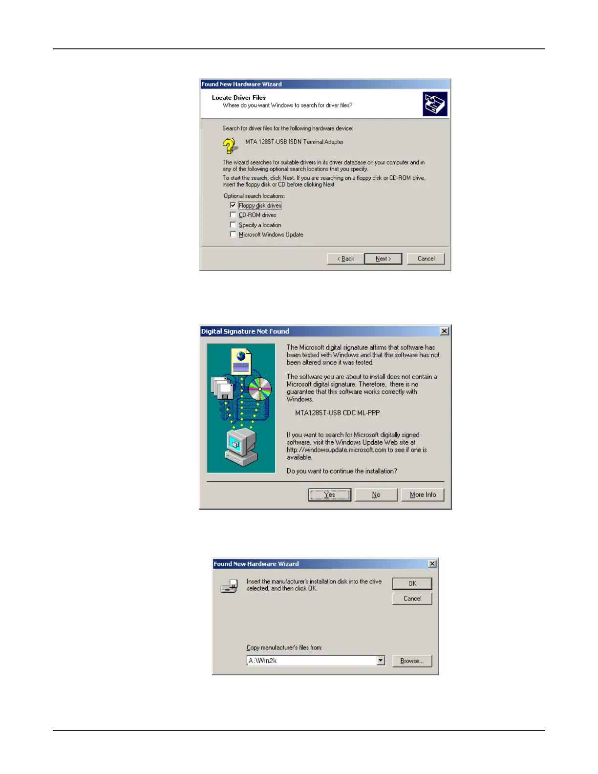 8. The Found New Hardware Wizard asking you to insert the installation diskette displays.