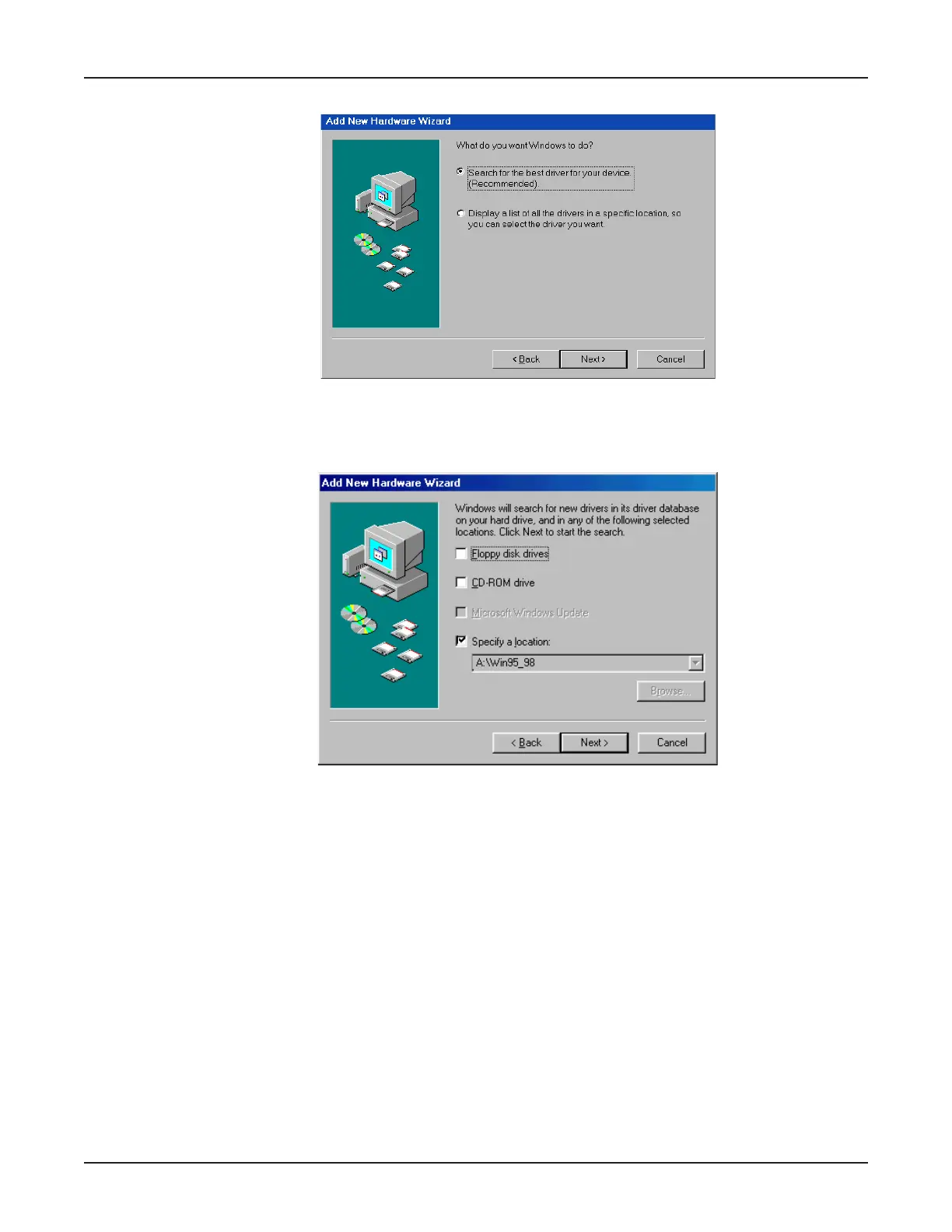 15. The Add New Hardware Wizard dialog box displays, indicating Windows will search for new