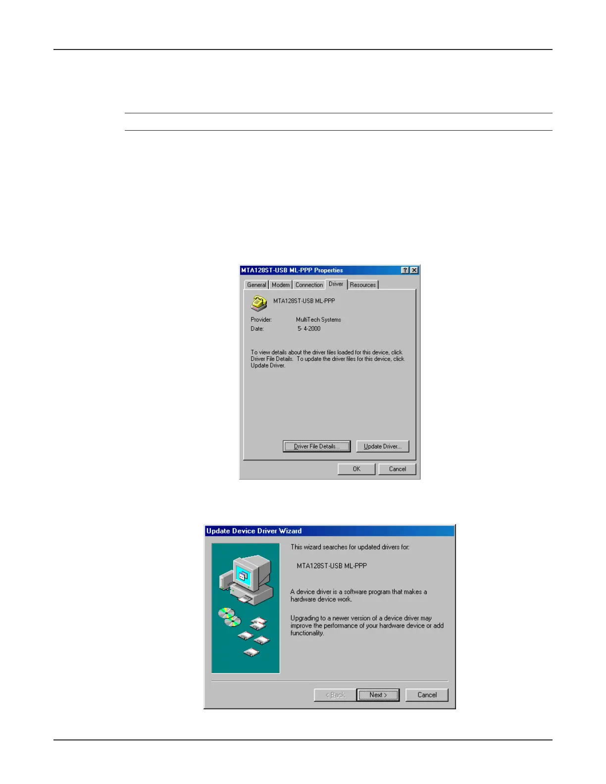 7. The Update Device Driver Wizard dialog box displays.