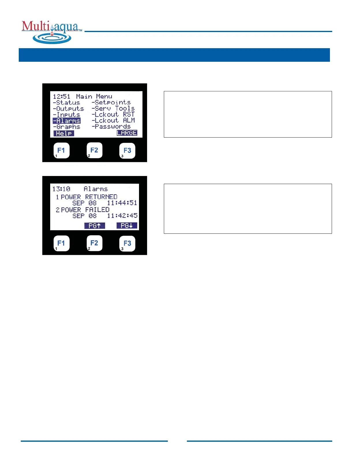 PAGE UP / DOWN DISPLAYS NEXT ALARMS