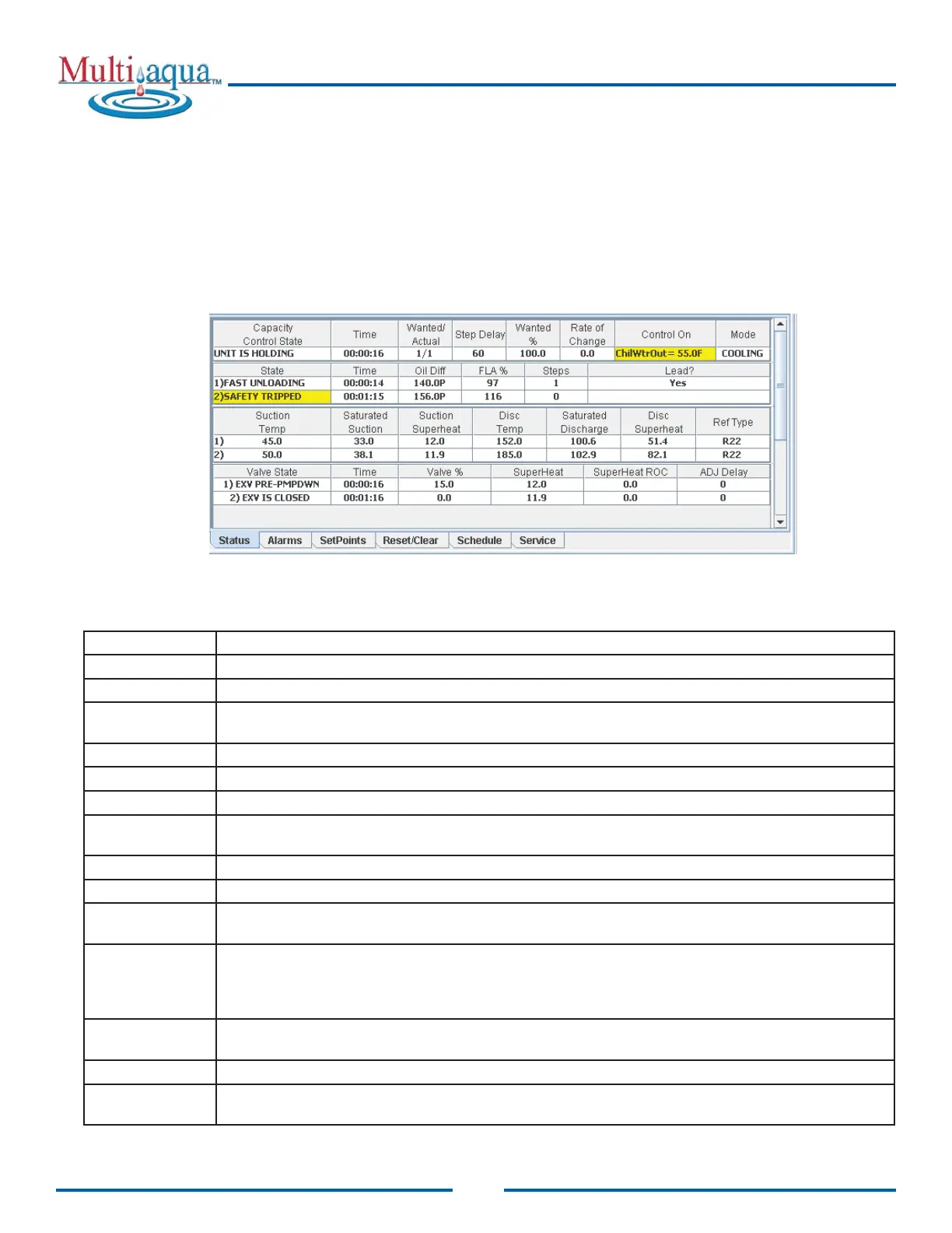 The EXV Control States show the status of the compressor’s expansion valve. If the compressor has an