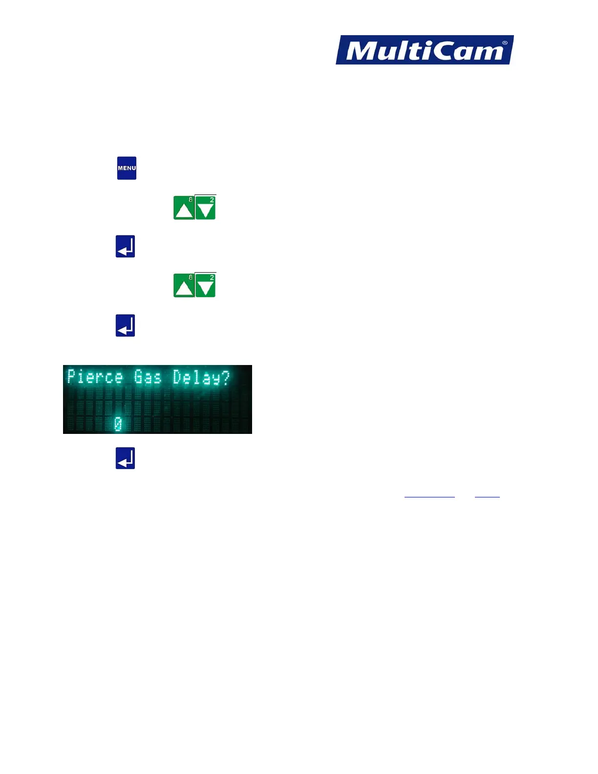 The Pierce Gas Delay function is used in conjunction with the capacitive cutting head to configure the length of