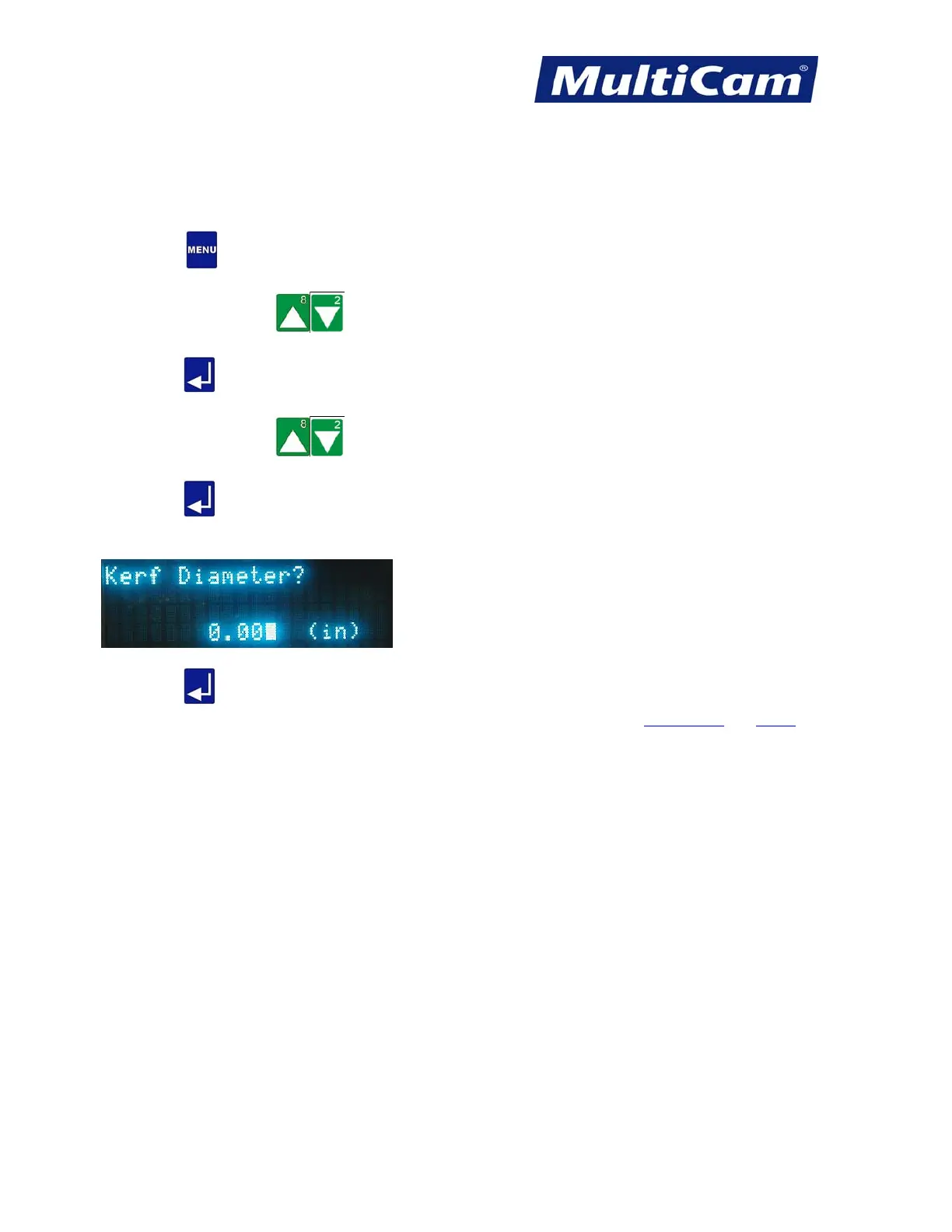 6. Enter the kerf diameter using the number keypad (e.g., 0.000).
