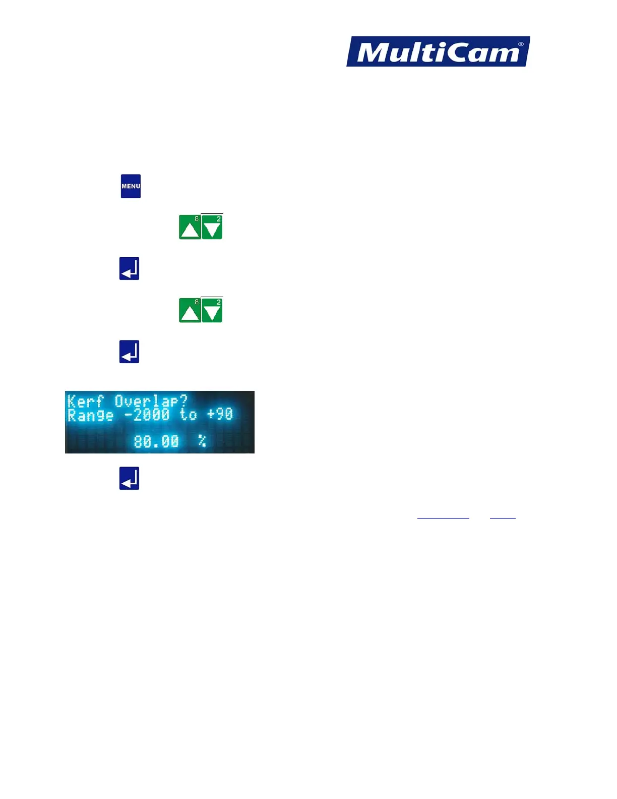 6. Enter the kerf overlap percentage value using the number keypad (e.g., 80).