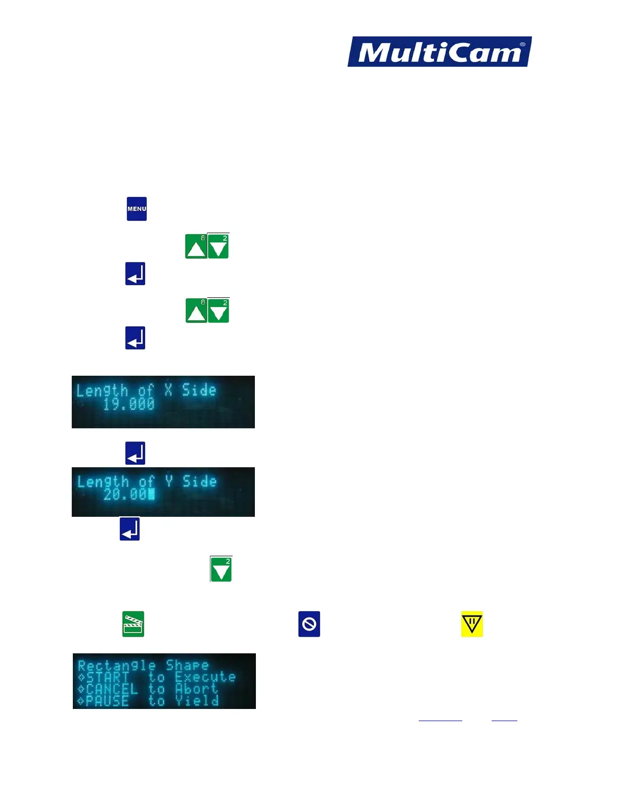 7. Enter the length of the X and Y sides for the Rectangle using the number keypad (e.g., X=19, Y=20).