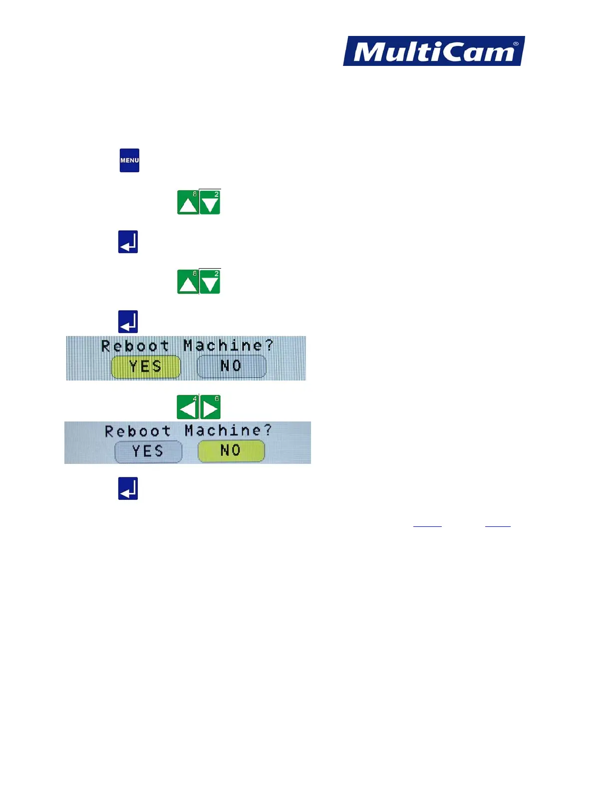 to process the reboot of the machine. If No is selected, then the display will return to the