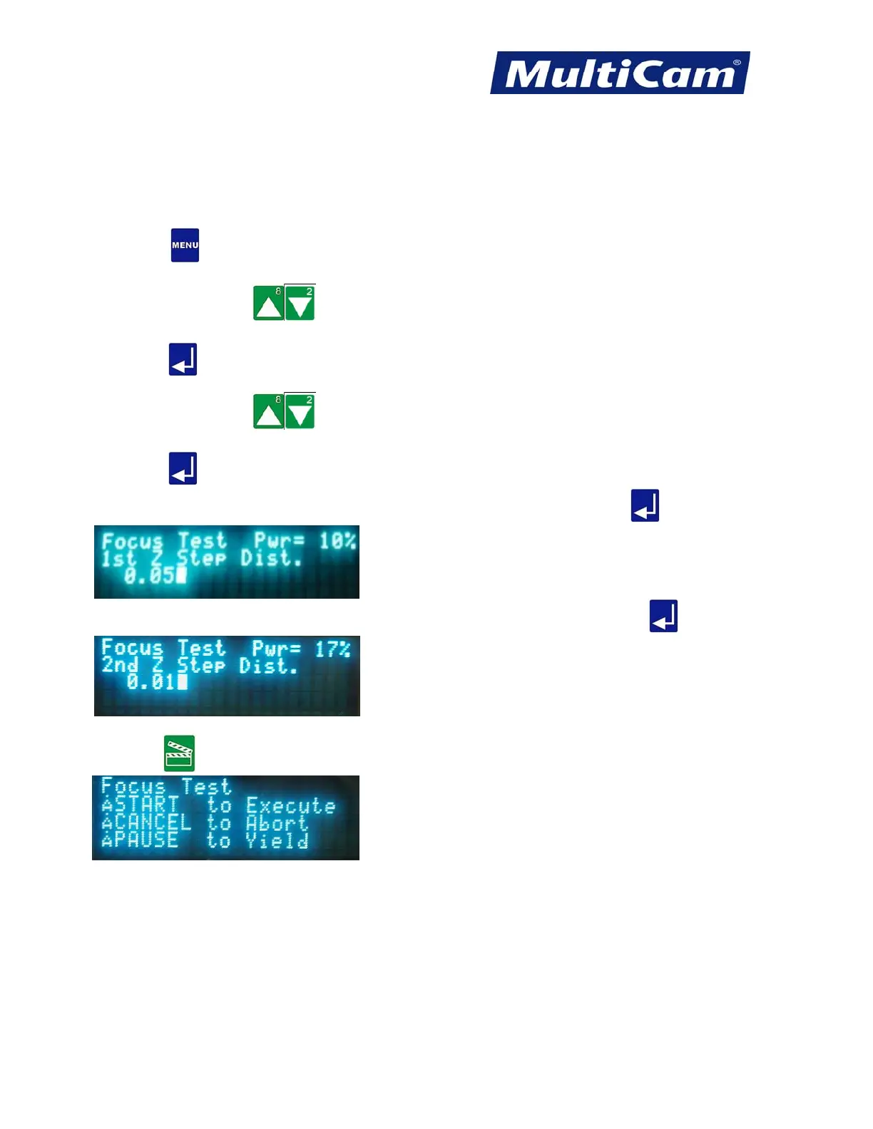 to begin the Focus Test. If multiple bright sparks appear, operators should lower Power.