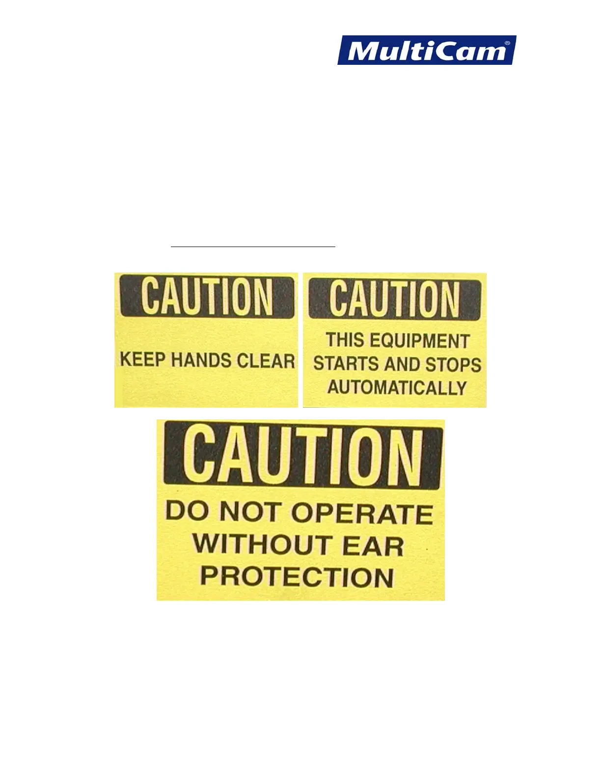 Each machine produced by MultiCam includes certain cautions, warnings, dangers, and notices placed on the