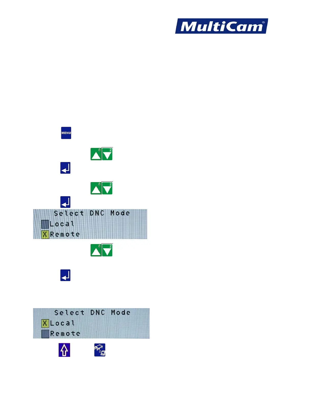 The DNC Mode function is used to allow the operator to toggle back and forth between local and remote DNC