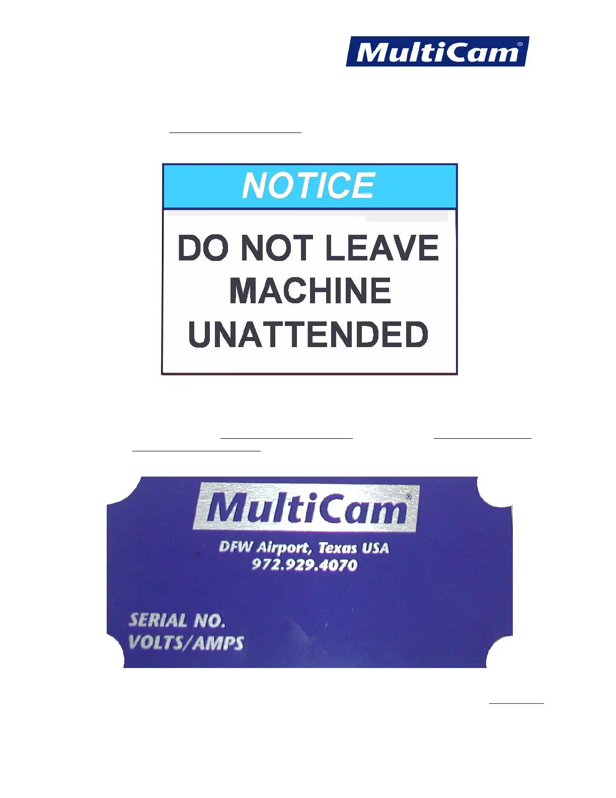against a blue backdrop. This label is normally located at the front of the machine.