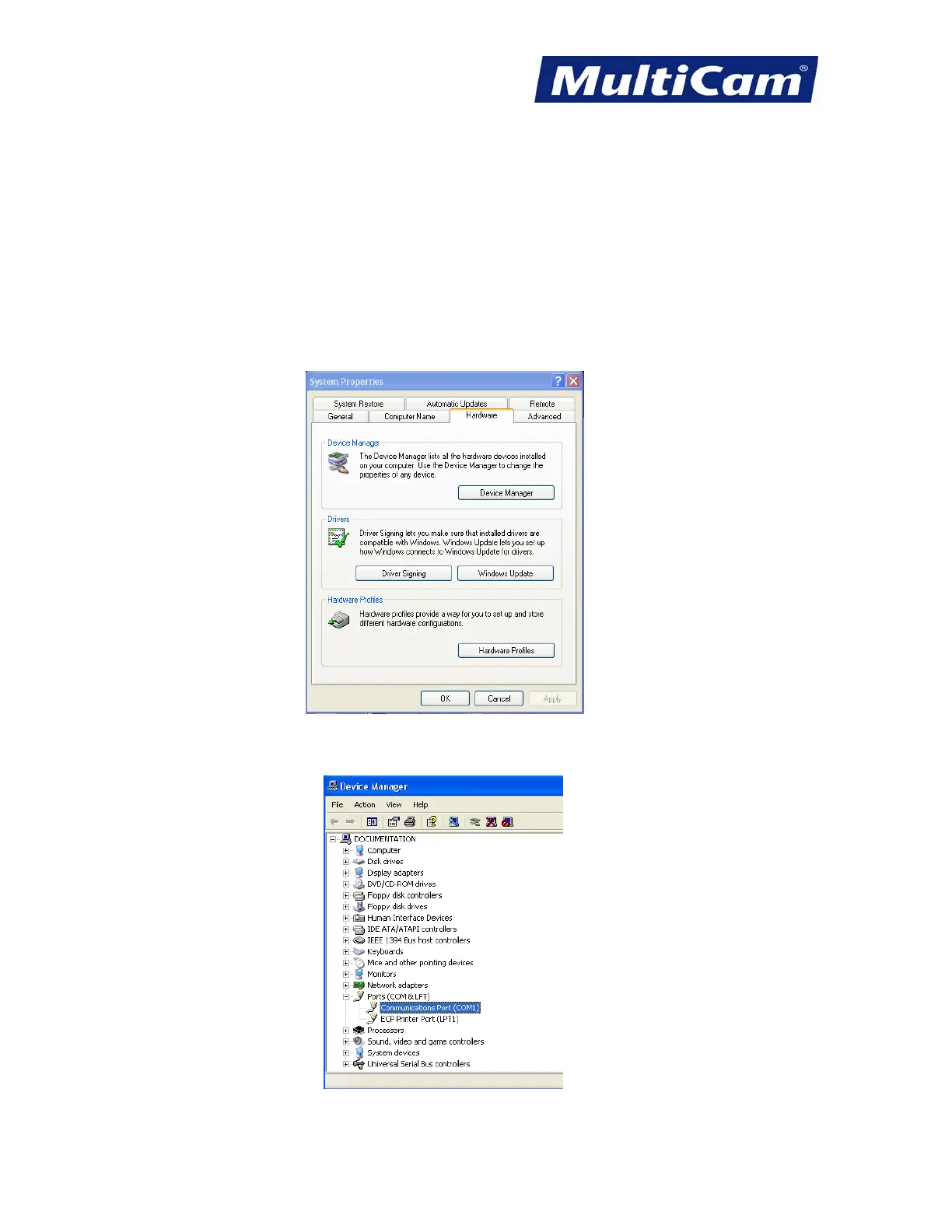 2. Select Ports (COM & LPT) and then select Communications Port (COM1) or the port to which the