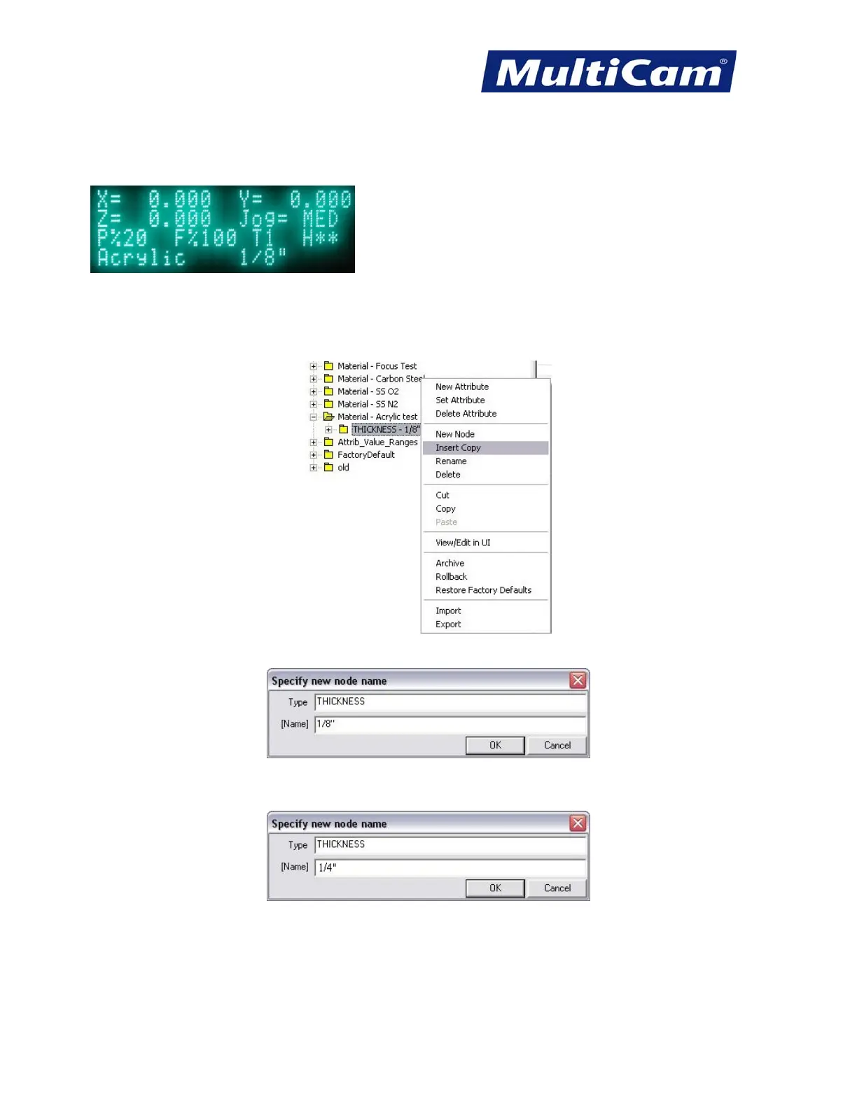 4. Change the name of the thickness if necessary (e.g., 1/8” to 1/4”) and select OK. Operators can use up to 6