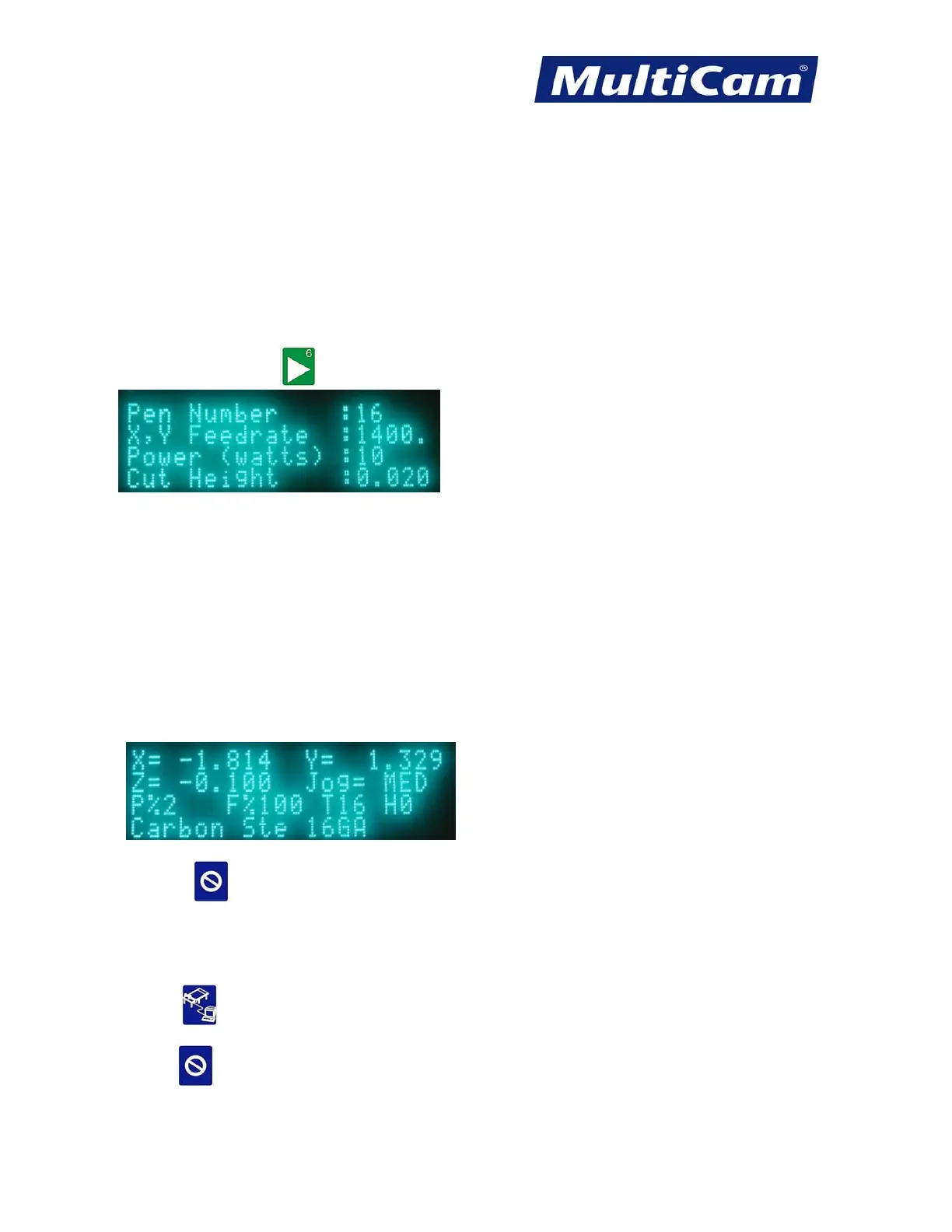 operators may choose Pen 1 for cutting or Pen 2 for engraving. The active pen number will be shown on the