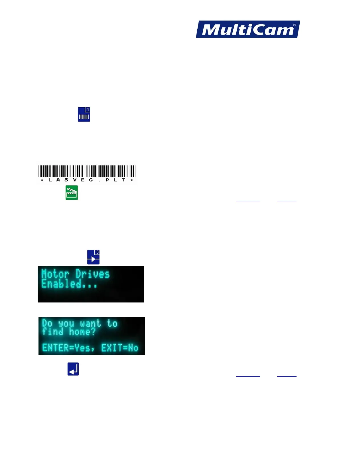 The display will prompt the operator to find home after re-enabling the motor drives.