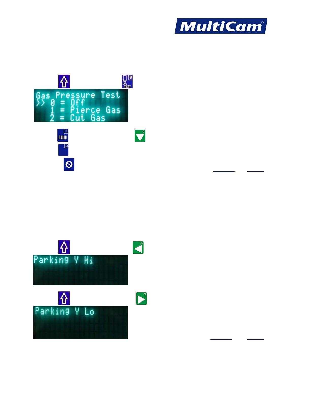 The Gas Pressure Test function allows the operator to test the pierce gas pressure and the cut gas pressure on laser