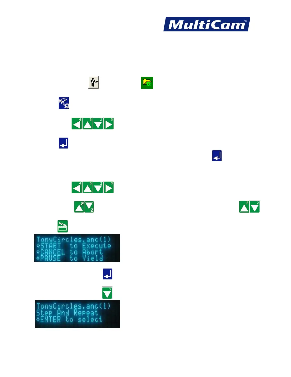7. Press X-axis Down Jog Arrow twice to access the Step and Repeat function.
