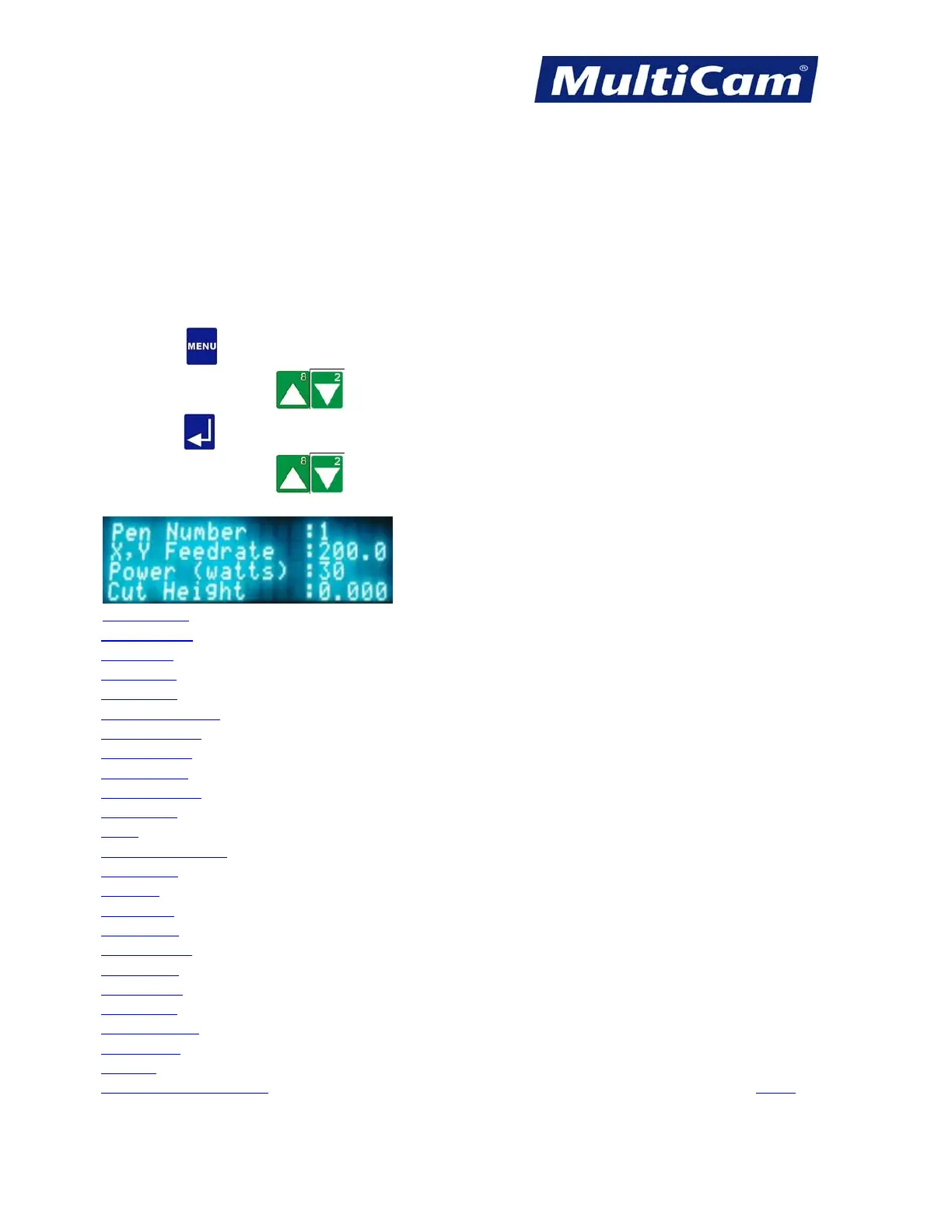 display extends 4 rows, so the operator must Jog down to see additional menu items. These sub-menu items allow