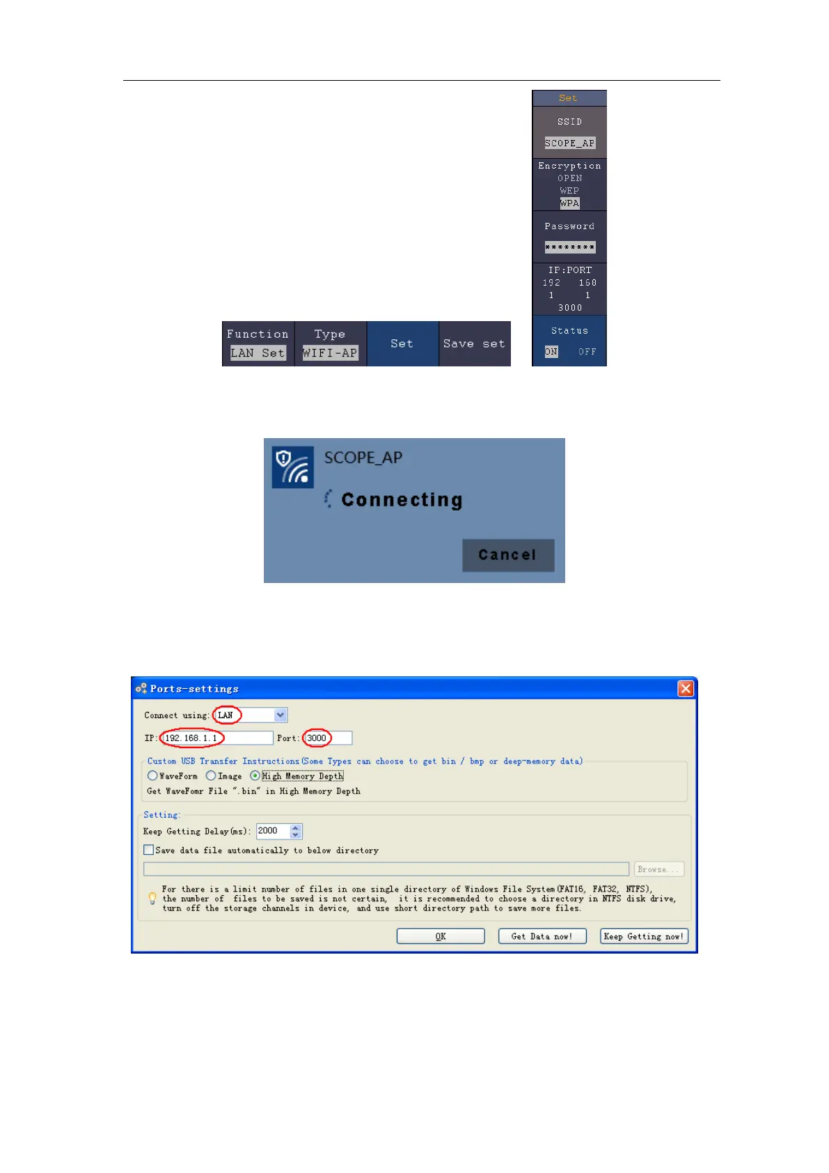 Figure 7-8 Set the network parameters of the Oscilloscope Software