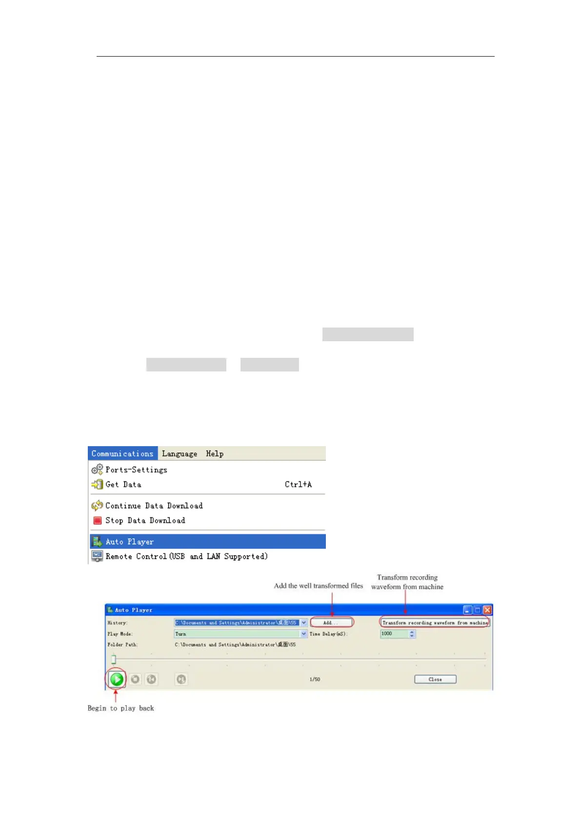 file. Open the software, and do as follows to play back the waveform.