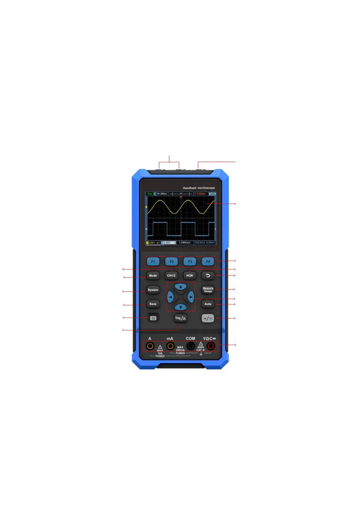 The front panel and keys of the oscilloscope are shown in Figure 4: