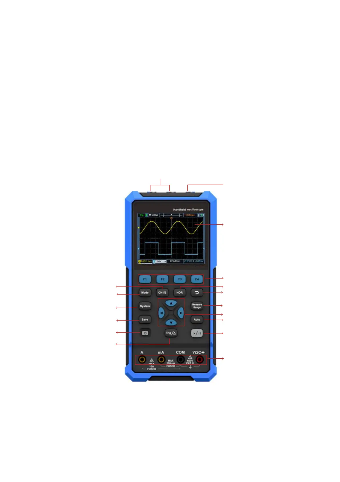 The front panel and keys of the oscilloscope are shown in Figure 4:
