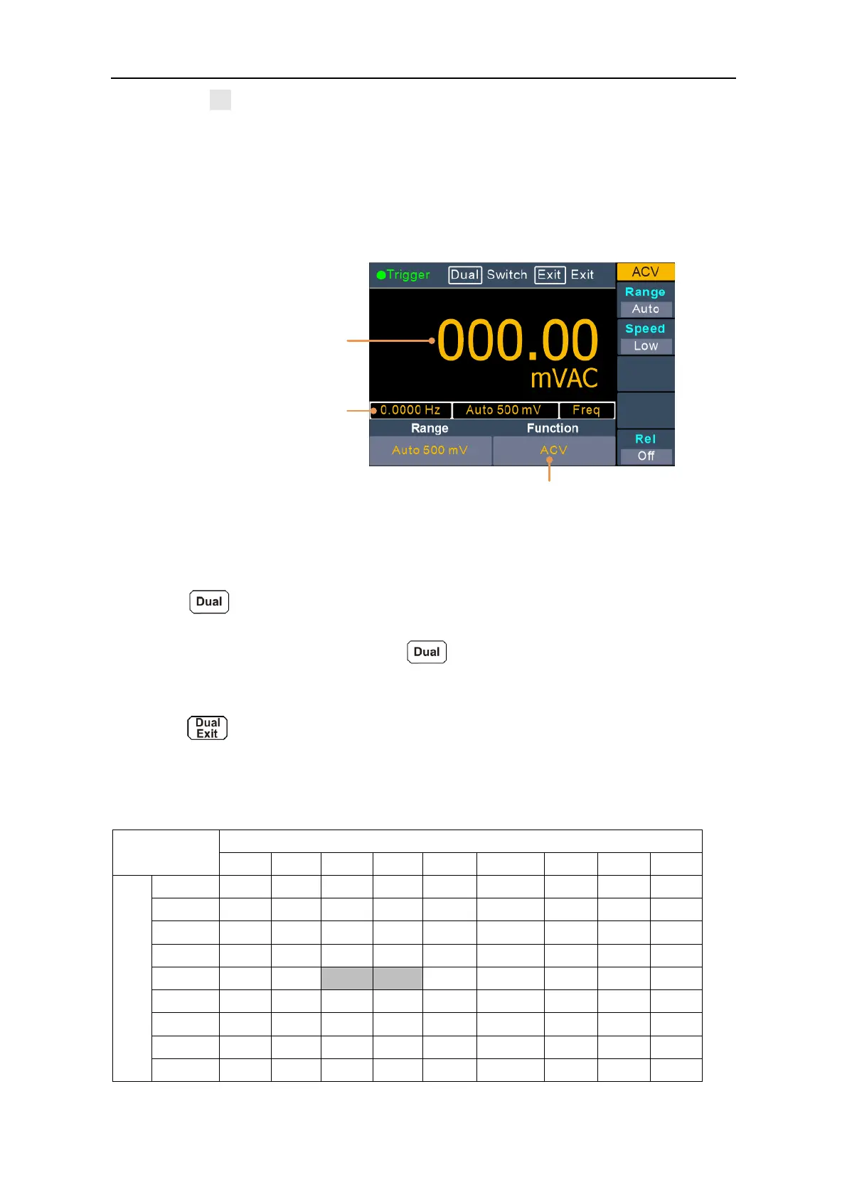 Using dual display function, you can view the readings of two measurement functions