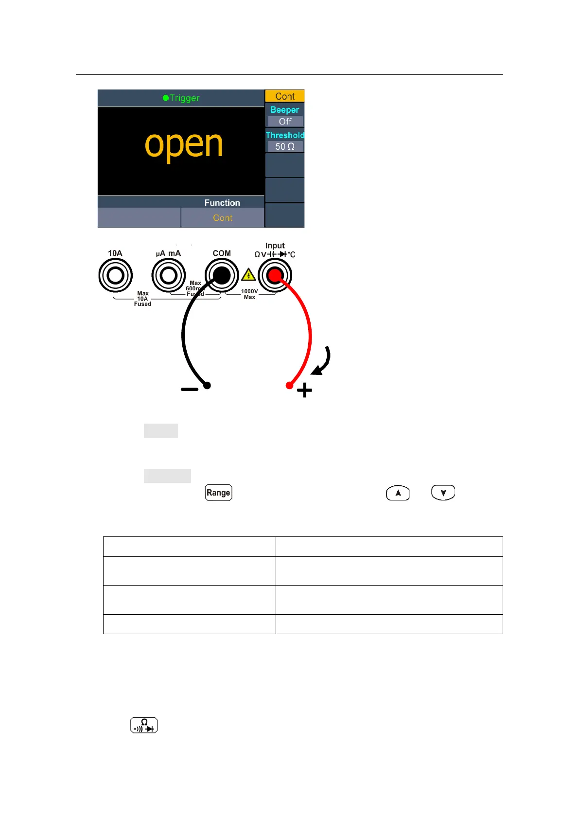 enabled, the reading is below 30 Ω, the multimeter will beep continuously.