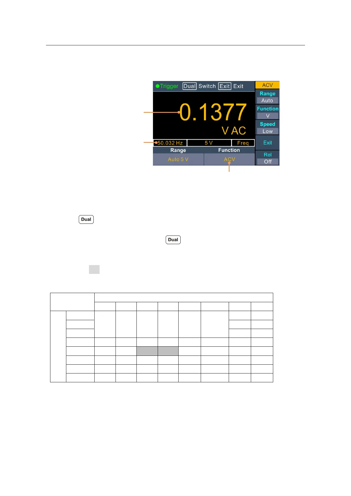 Using dual display function, you can view the readings of two measurement functions