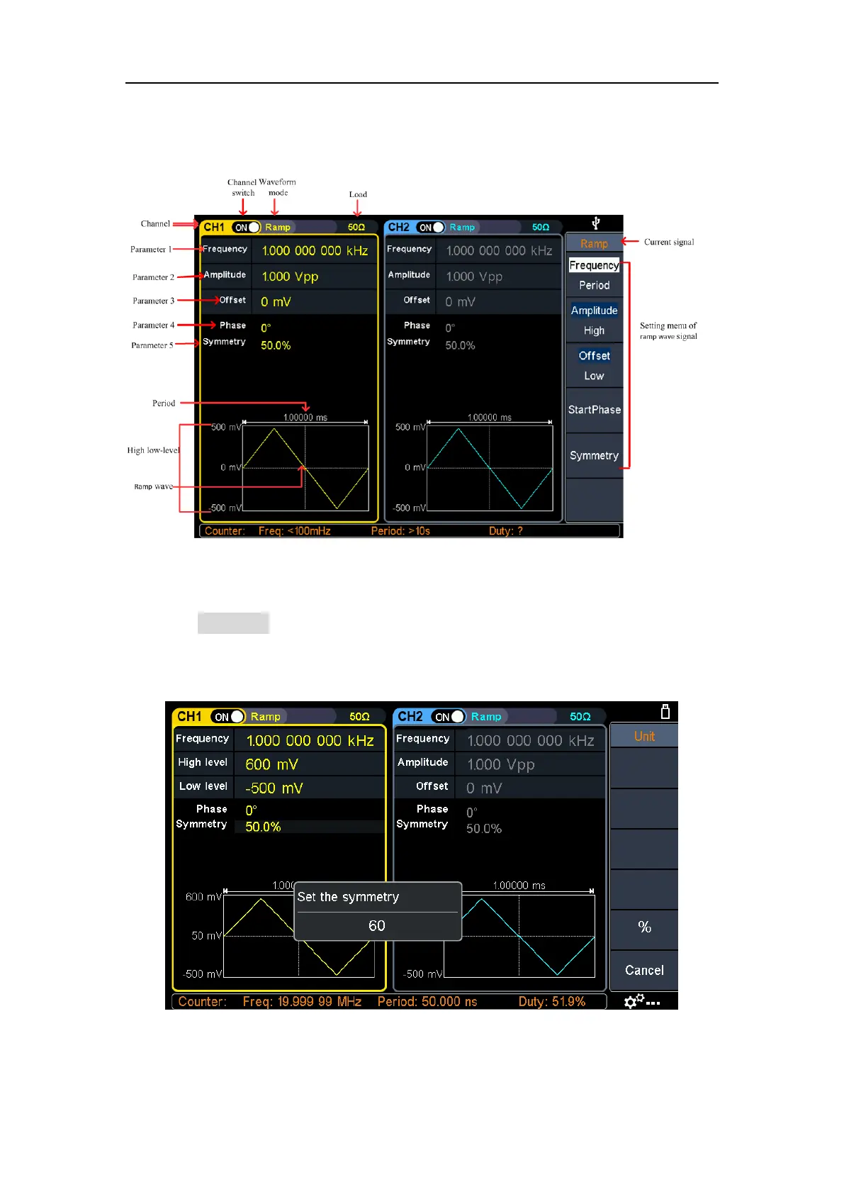 Figure 5-5: Set the symmetry of ramp wave