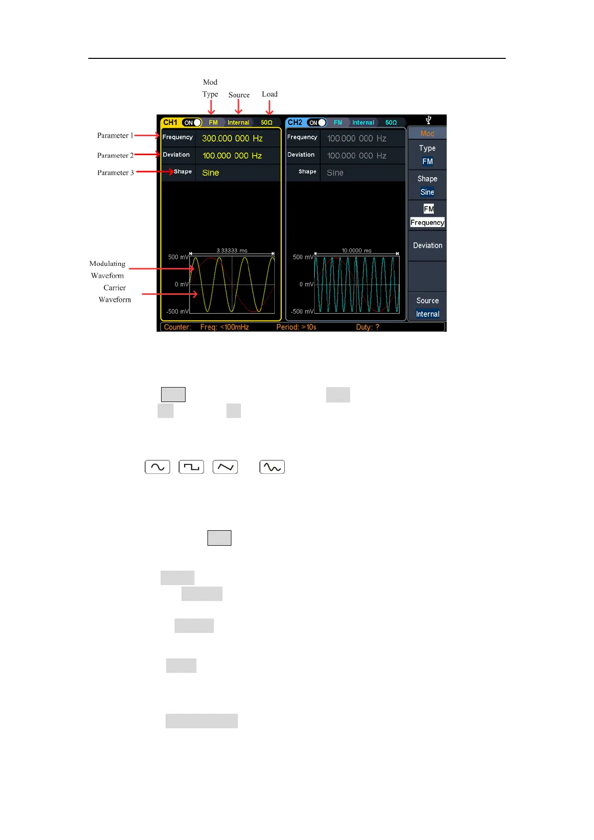 Press the FM Frequency softkey to set the modulating wave frequency. The