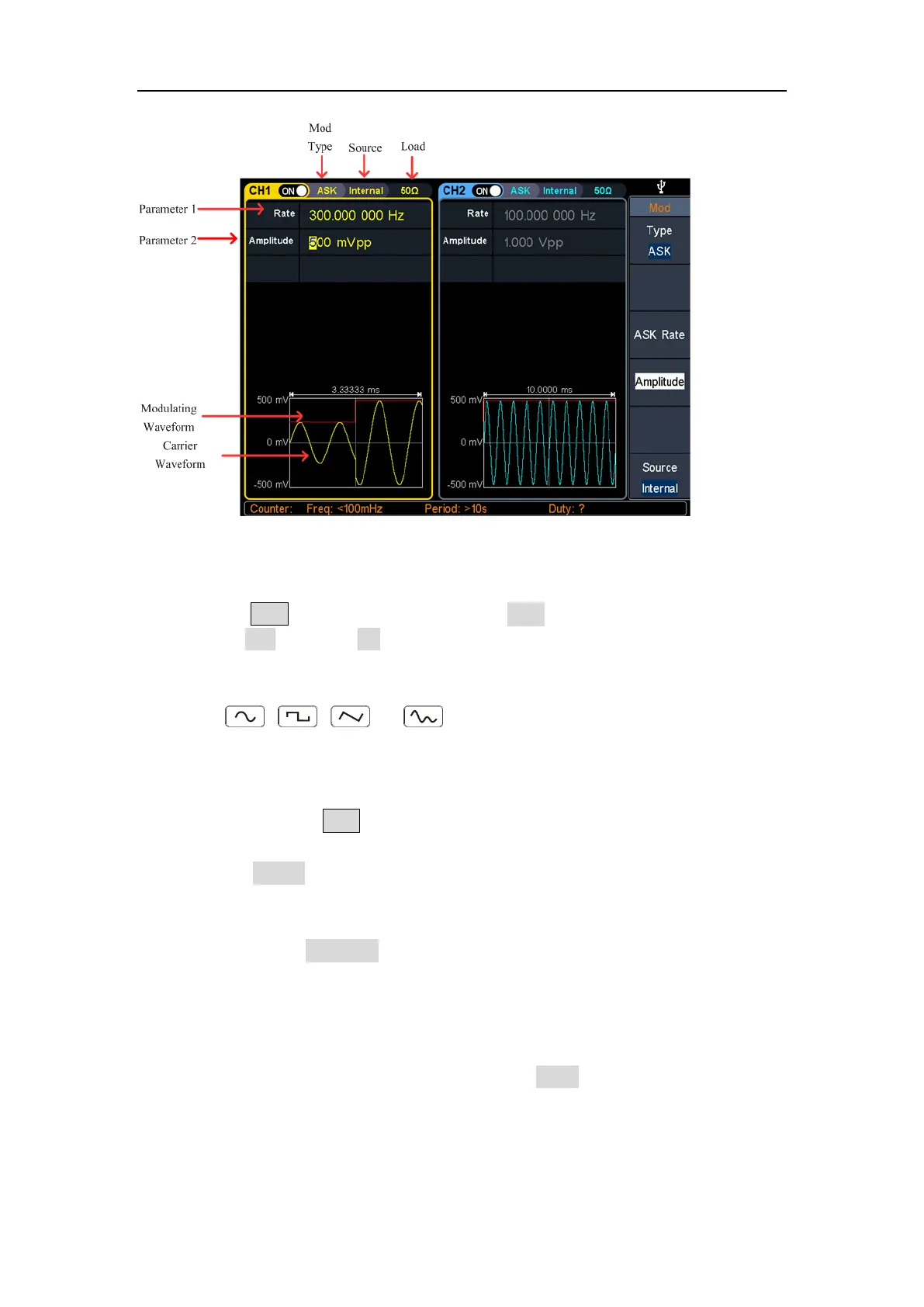cycle. Press the ASK Rate softkey to set the ASK rate. The rate at which the