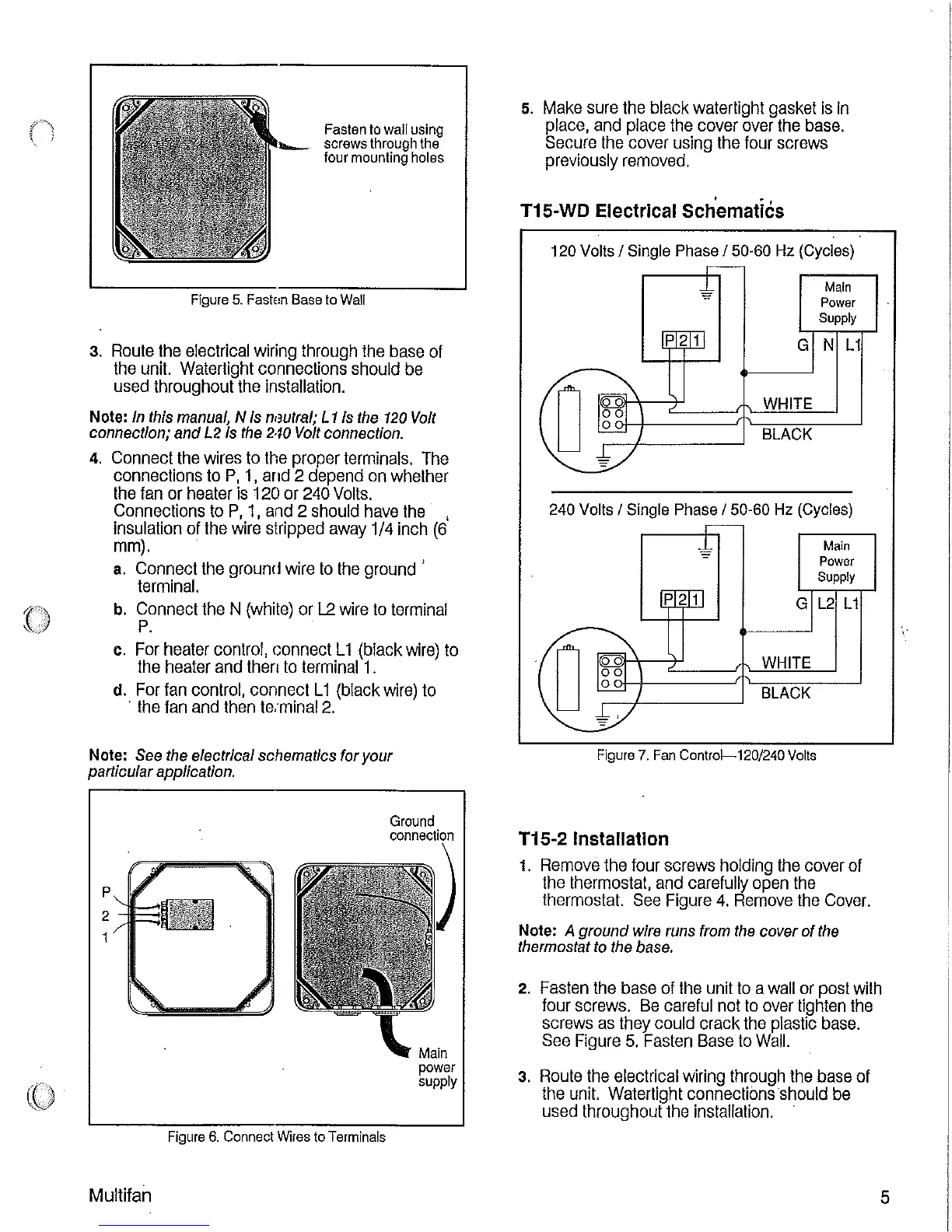 Multifan T15-WD - Wiring and Schematics; T15-WD Electrical Schematics; T15-2 Installation