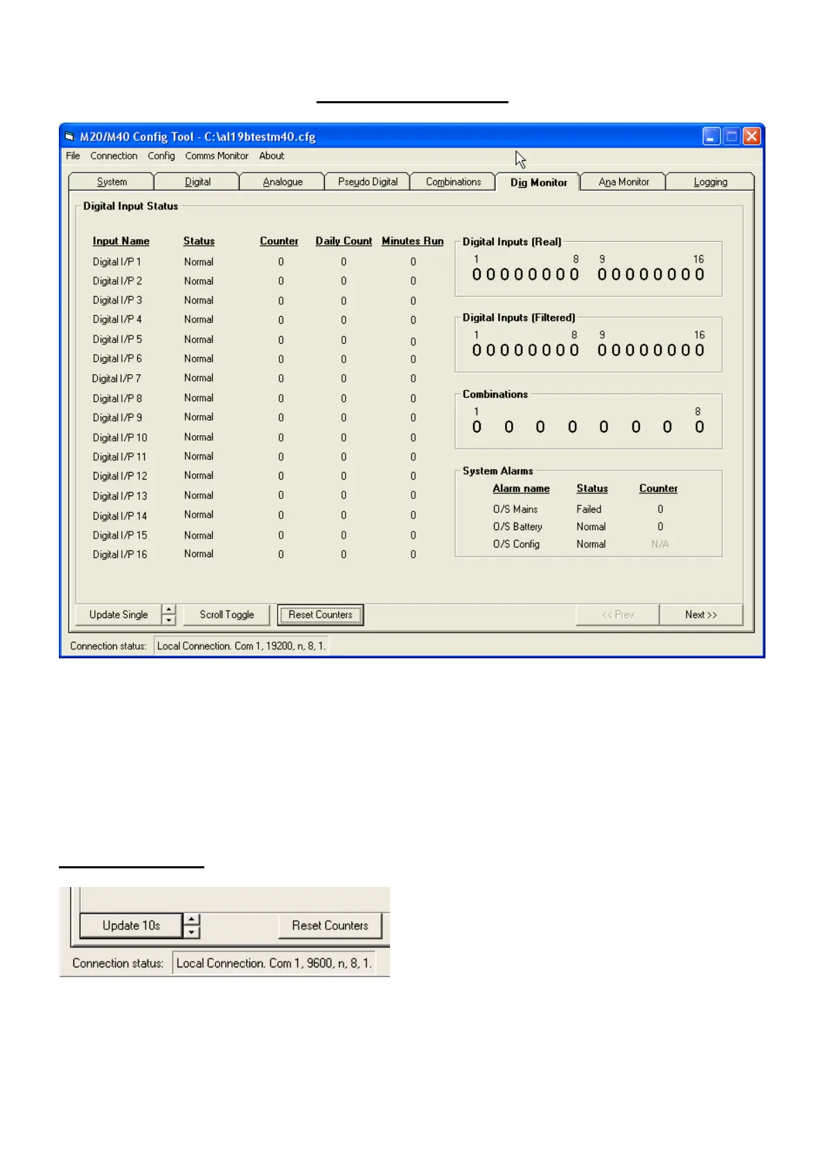 All the digital I/O details, including name, status & counts are displayed on the left with the digital values